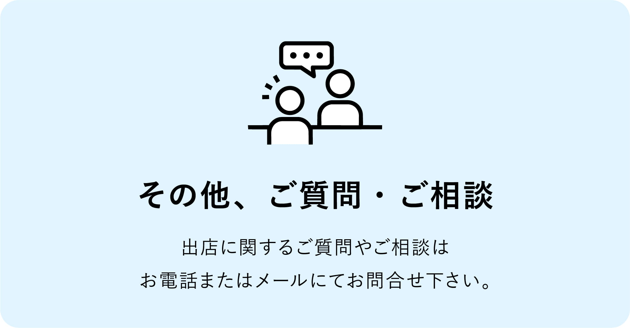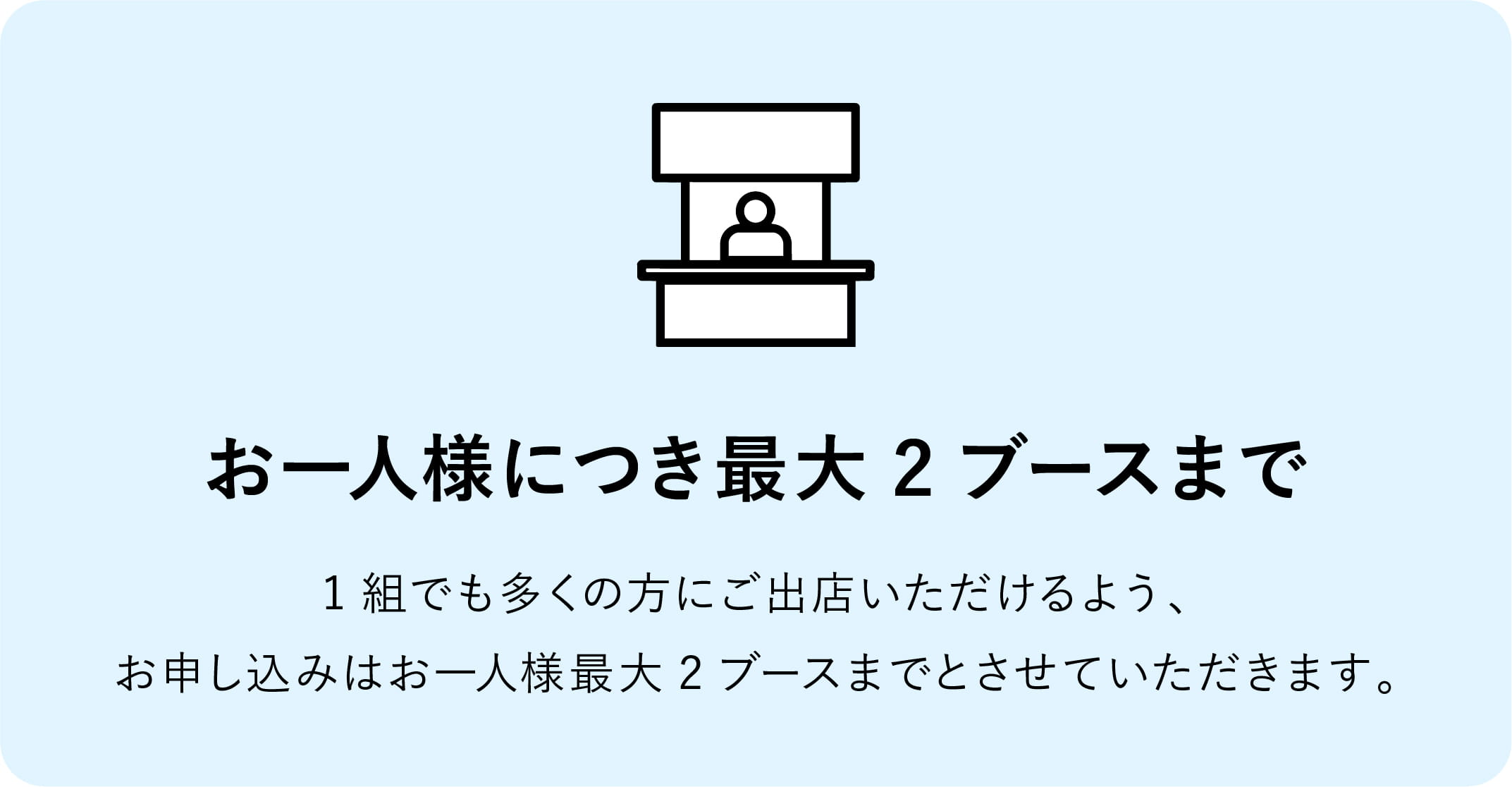 当日やむを得ない事情以外で出店キャンセルをされた場合、今後の出店をお断りさせていただきます。告知活動をしていく上で、施設の信用性を最優先させていただきますので、予めご了承ください。